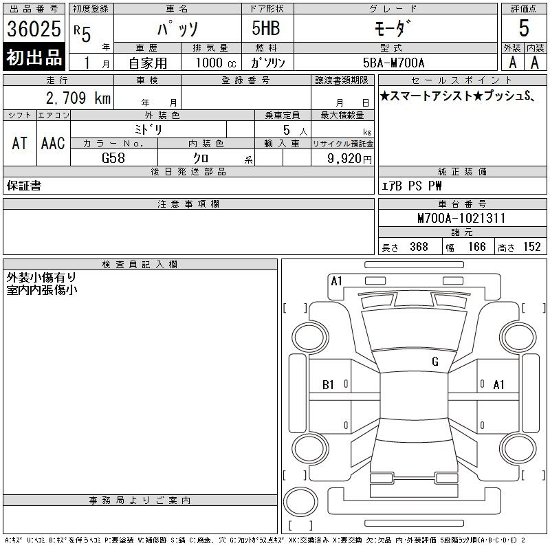 Toyota Passo, 2023 года - Лот№36025 ★5