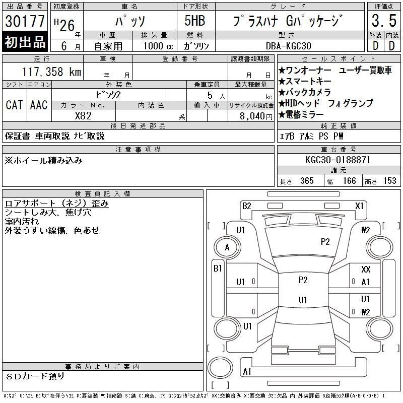 Toyota Passo, 2014 года - Лот№30177 ★3.5