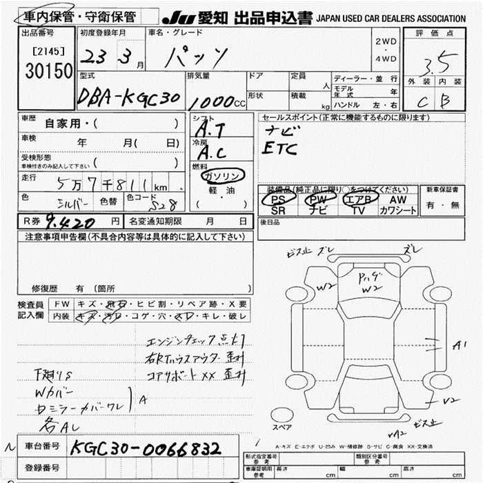 Toyota Passo, 2011 года - Лот№30150 ★3.5
