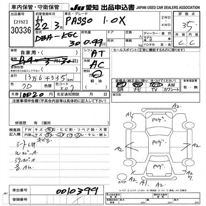 Toyota Passo, 2010 года - Лот№30336 ★3.5