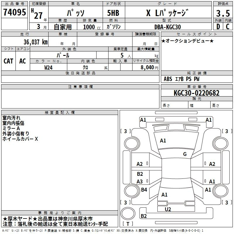 Toyota Passo, 2015 года - Лот№74095 ★3.5
