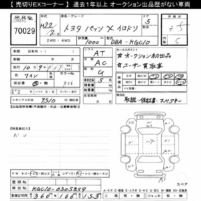 Toyota Passo, 2010 года - Лот№70029 ★3.5