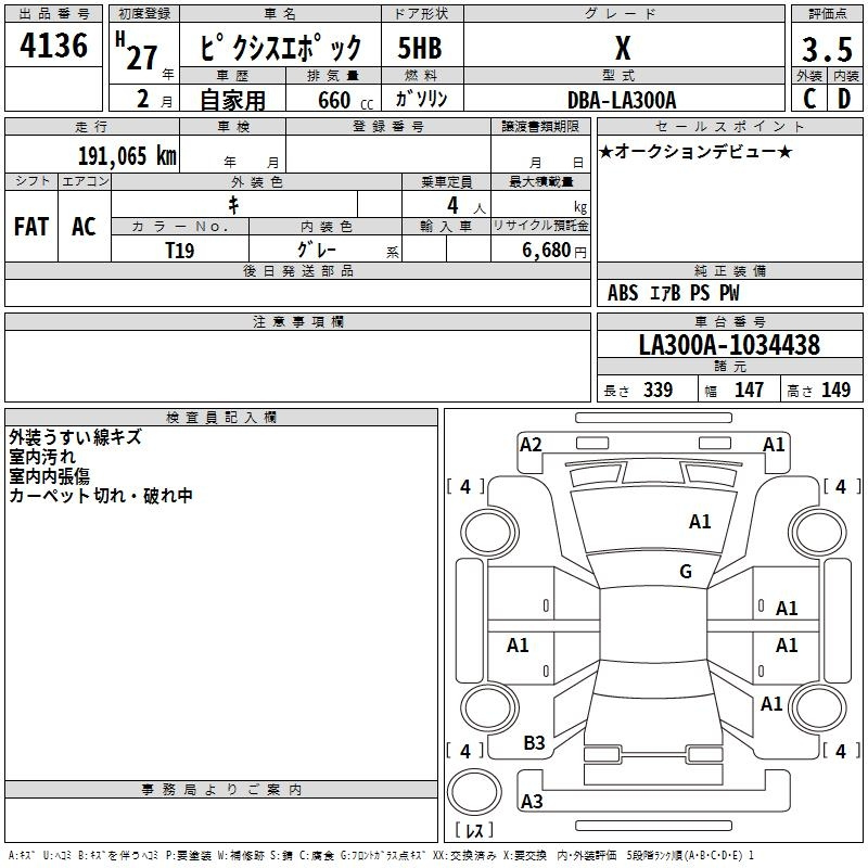 Toyota Pixis epoch, 2015 года - Лот№4136 ★3.5