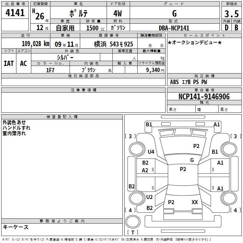 Toyota Porte, 2014 года - Лот№4141 ★3.5