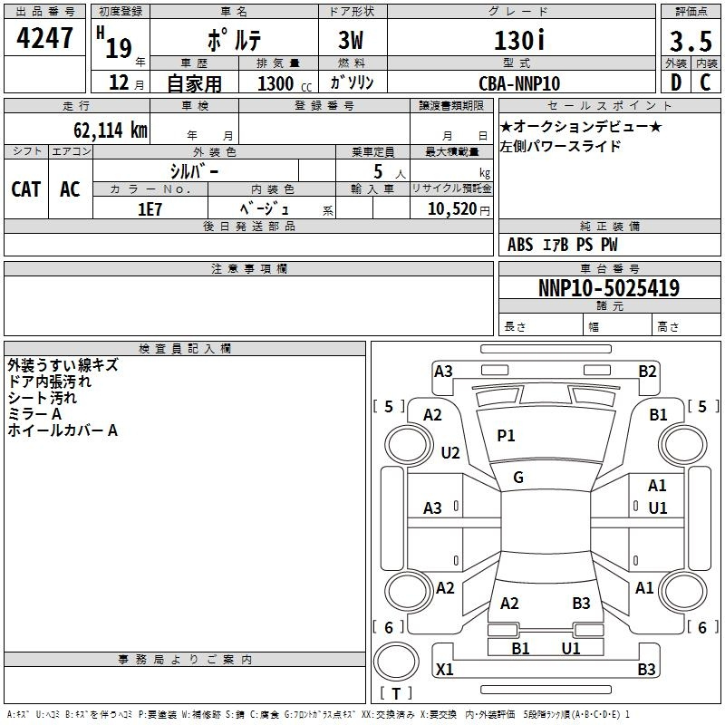 Toyota Porte, 2007 года - Лот№4247 ★3.5