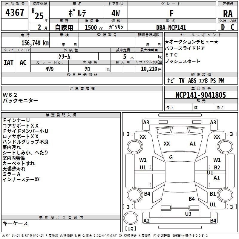Toyota Porte, 2013 года - Лот№4367 ★RA