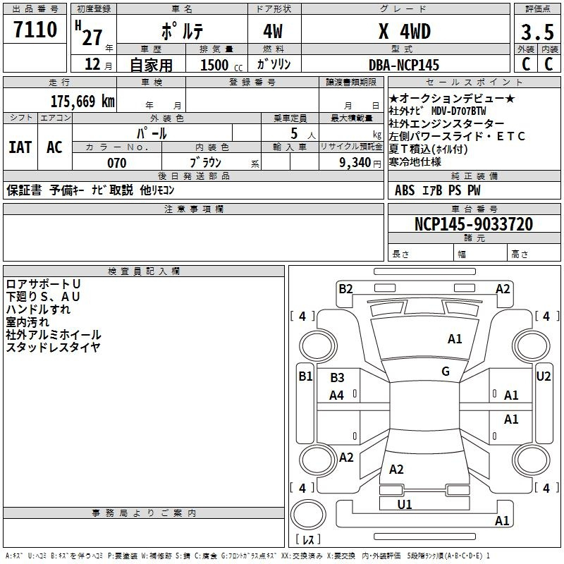 Toyota Porte, 2015 года - Лот№7110 ★3.5