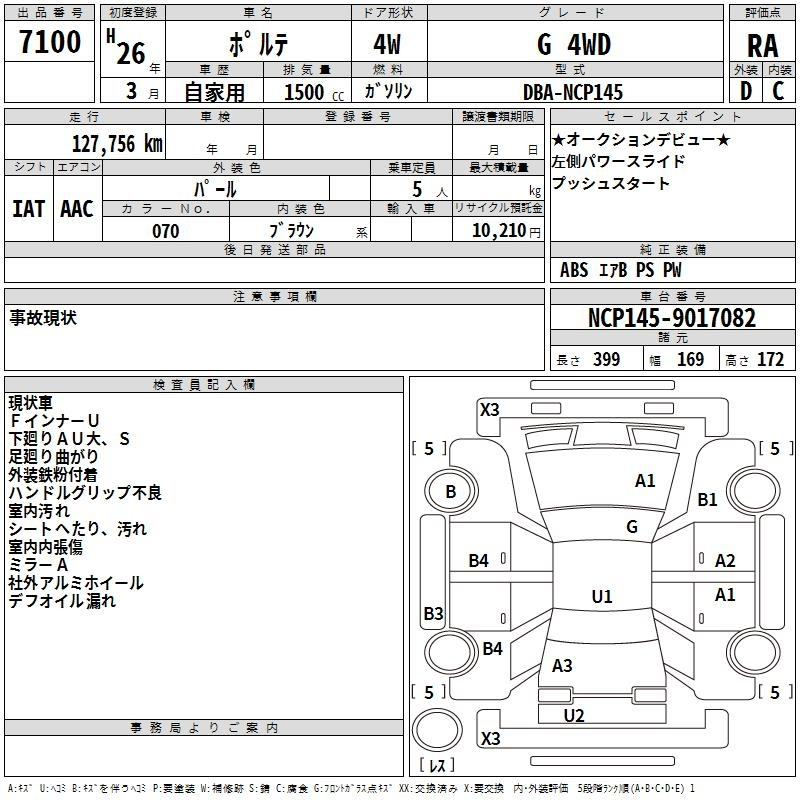 Toyota Porte, 2014 года - Лот№7100 ★RA