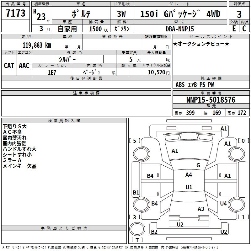 Toyota Porte, 2011 года - Лот№7173 ★3