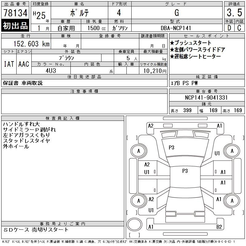 Toyota Porte, 2013 года - Лот№78134 ★3.5
