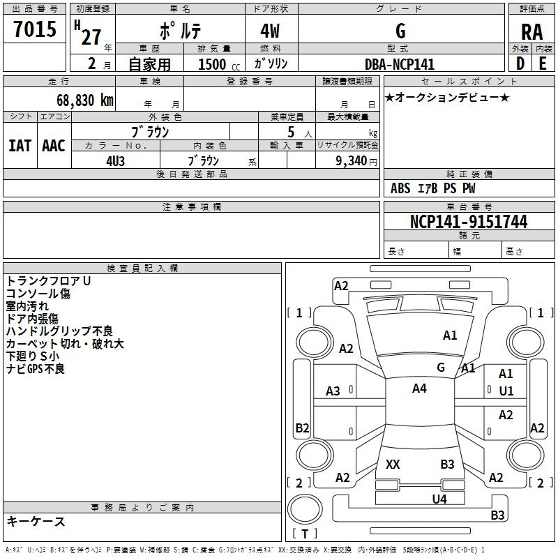 Toyota Porte, 2015 года - Лот№7015 ★RA