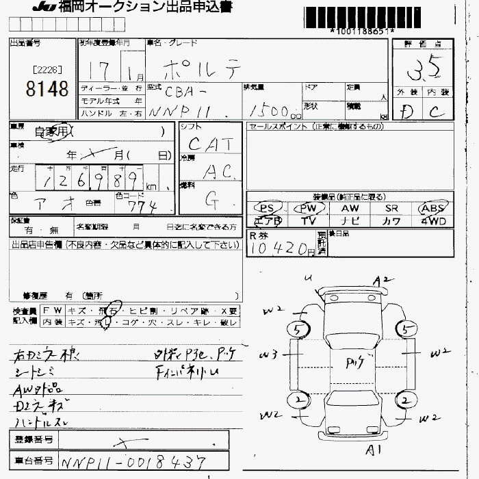 Toyota Porte, 2005 года - Лот№8148 ★3.5