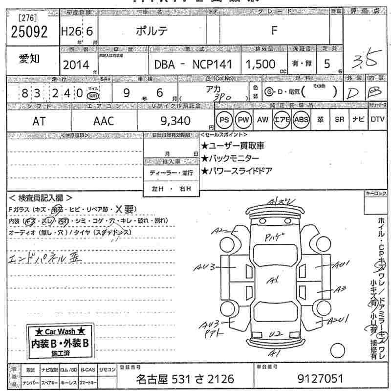 Toyota Porte, 2014 года - Лот№25092 ★3.5