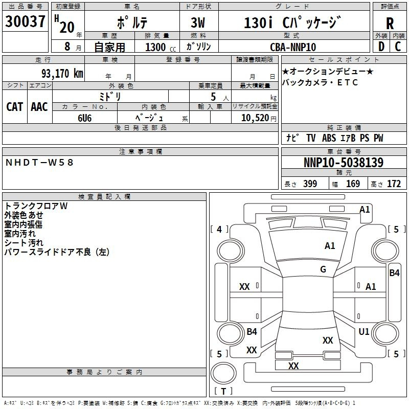 Toyota Porte, 2008 года - Лот№30037 ★R