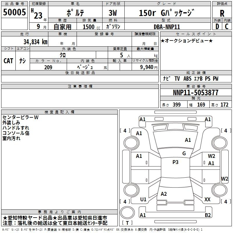 Toyota Porte, 2011 года - Лот№50005 ★R