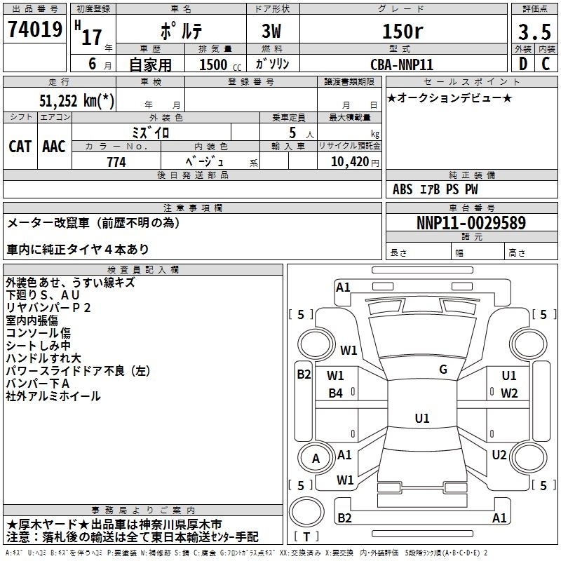 Toyota Porte, 2005 года - Лот№74019 ★3.5