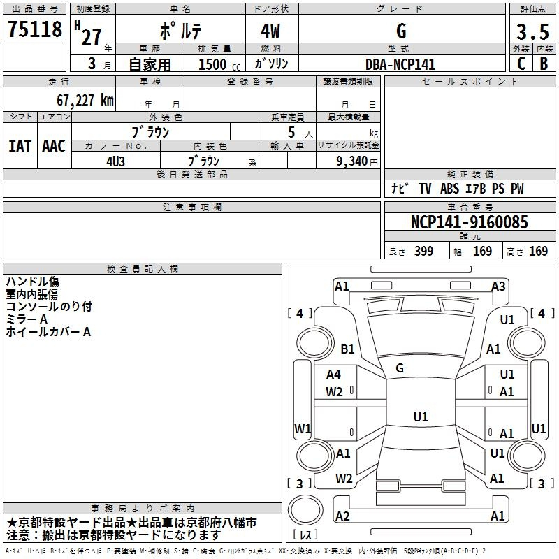 Toyota Porte, 2015 года - Лот№75118 ★3.5