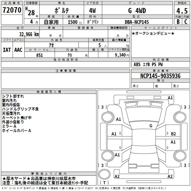 Toyota Porte, 2016 года - Лот№72070 ★4.5
