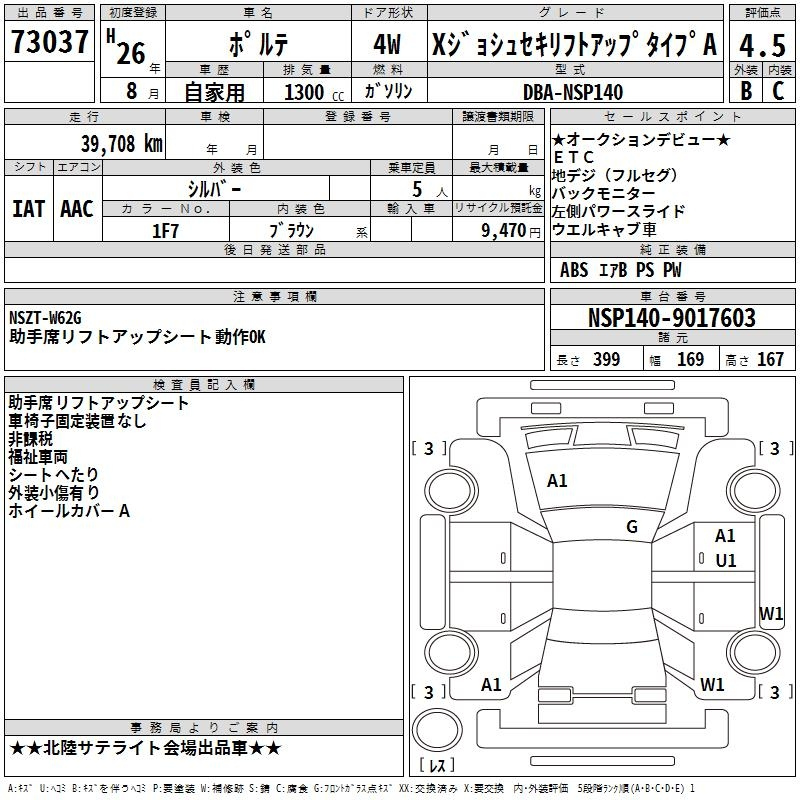 Toyota Porte, 2014 года - Лот№73037 ★4.5