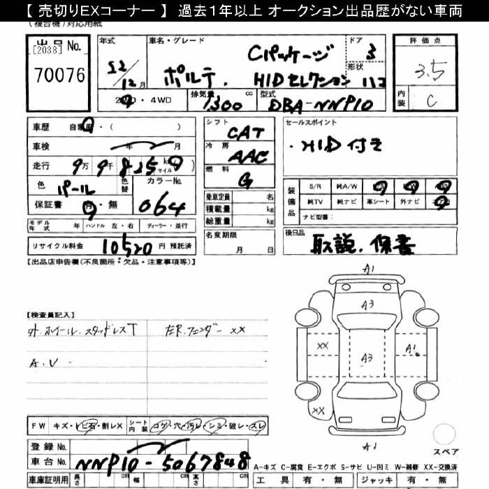 Toyota Porte, 2010 года - Лот№70076 ★3.5