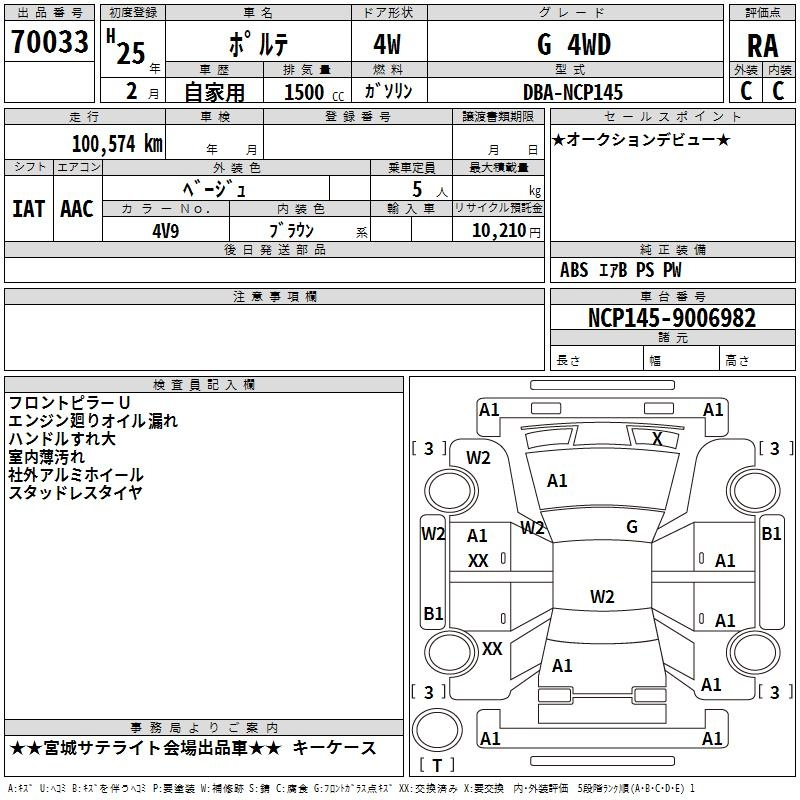 Toyota Porte, 2013 года - Лот№70033 ★RA