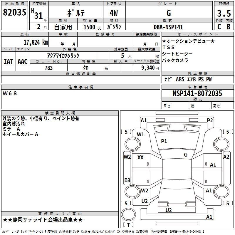 Toyota Porte, 2019 года - Лот№82035 ★3.5
