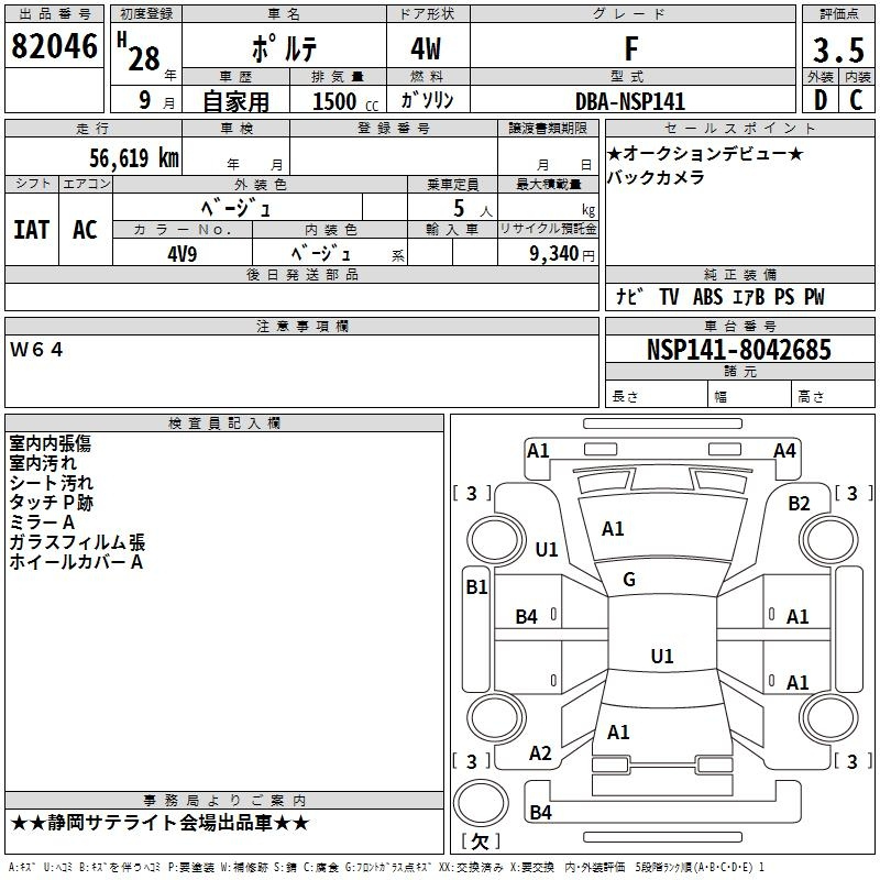 Toyota Porte, 2016 года - Лот№82046 ★3.5
