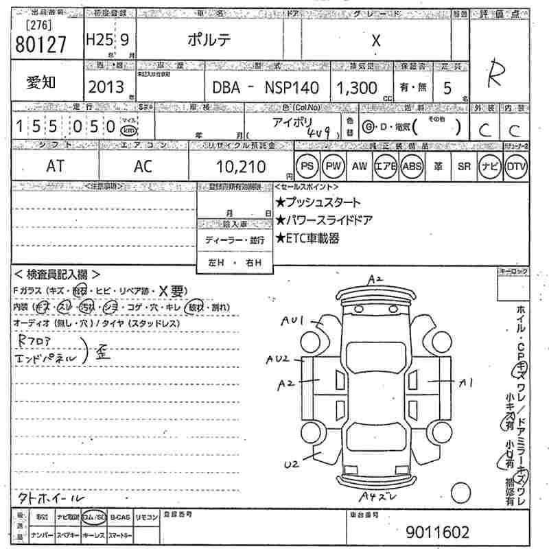 Toyota Porte, 2013 года - Лот№80127 ★R