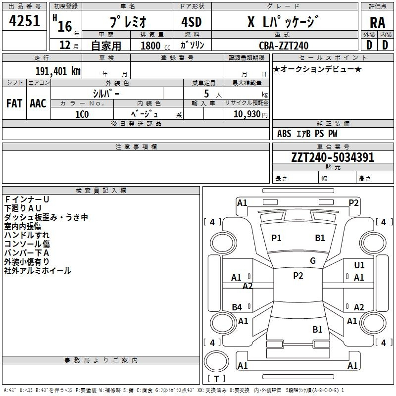 Toyota Premio, 2004 года - Лот№4251 ★RA