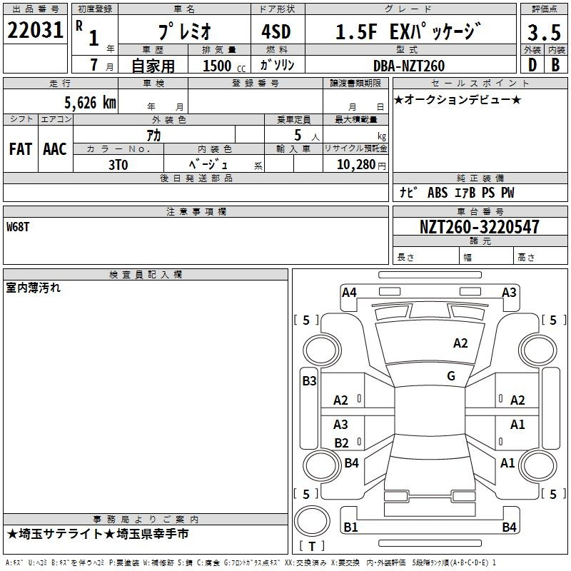 Toyota Premio, 2019 года - Лот№22031 ★3.5