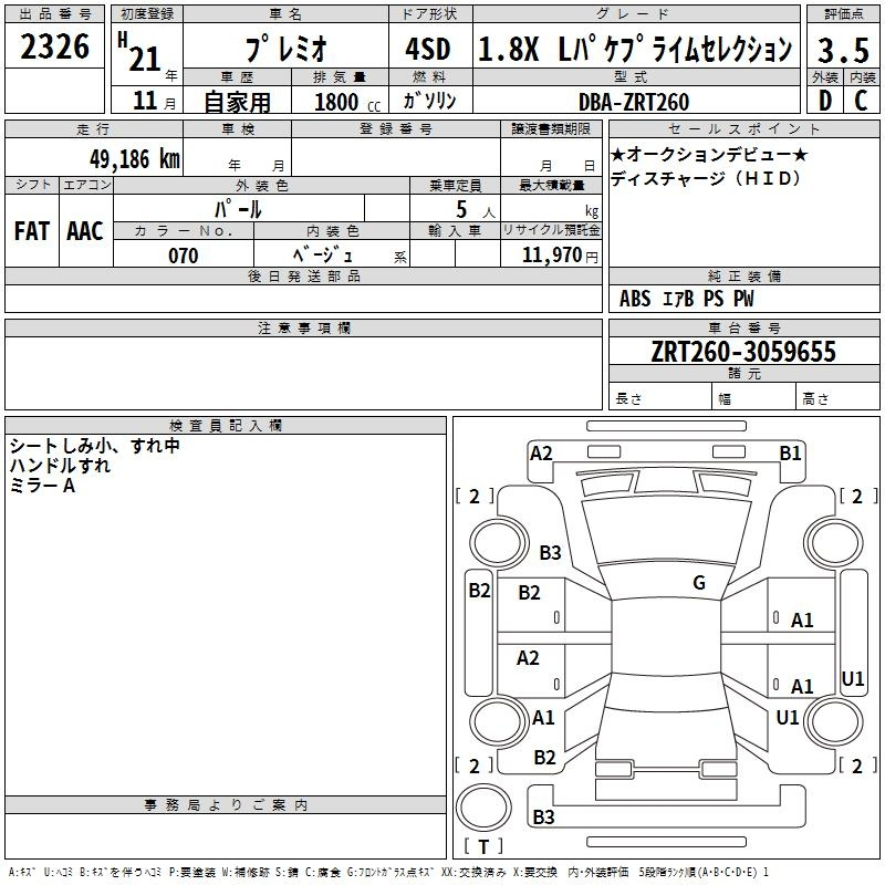 Toyota Premio, 2009 года - Лот№2326 ★3.5