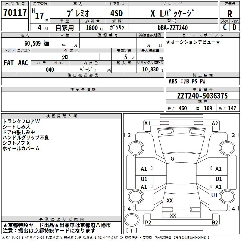 Toyota Premio, 2005 года - Лот№70117 ★R