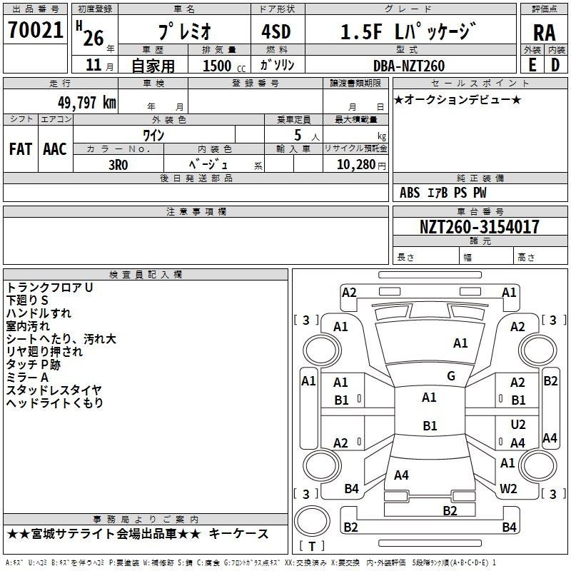 Toyota Premio, 2014 года - Лот№70021 ★RA