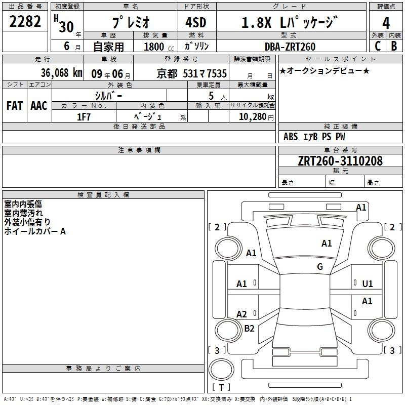 Toyota Premio, 2018 года - Лот№2282 ★4