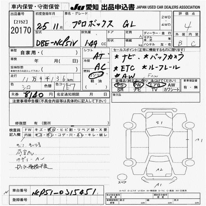 Toyota Probox, 2013 года - Лот№20170 ★4