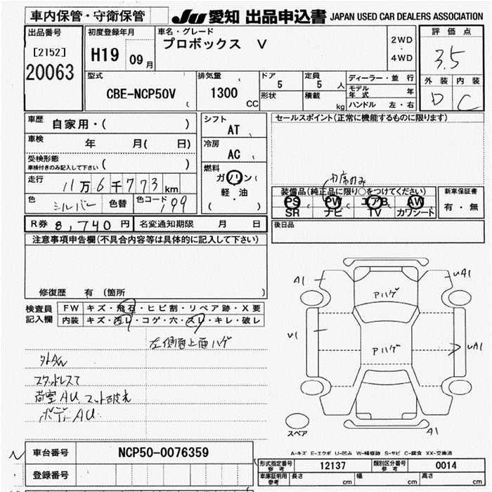 Toyota Probox, 2007 года - Лот№20063 ★3.5