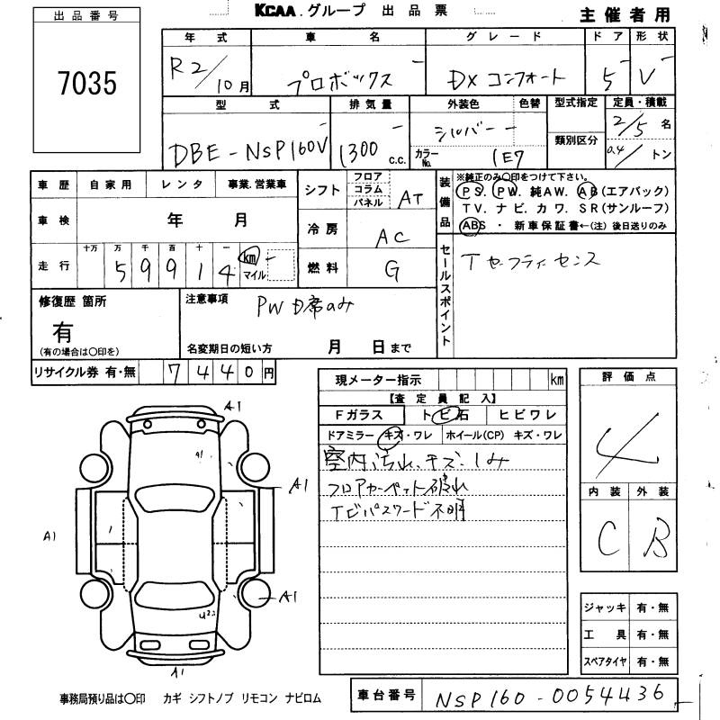 Toyota Probox, 2020 года - Лот№7035 ★4