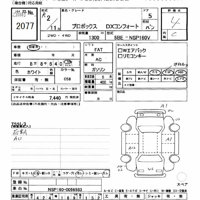 Toyota Probox, 2020 года - Лот№2077 ★4