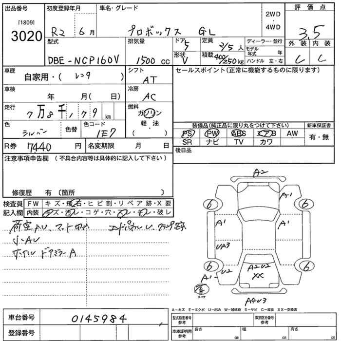 Toyota Probox, 2020 года - Лот№3020 ★3.5