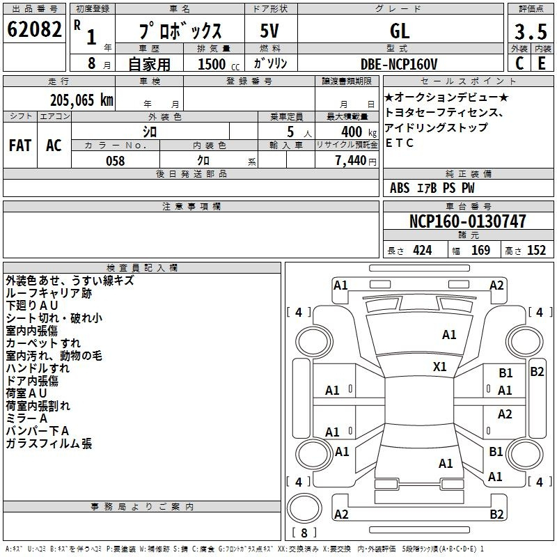 Toyota Probox, 2019 года - Лот№62082 ★3.5
