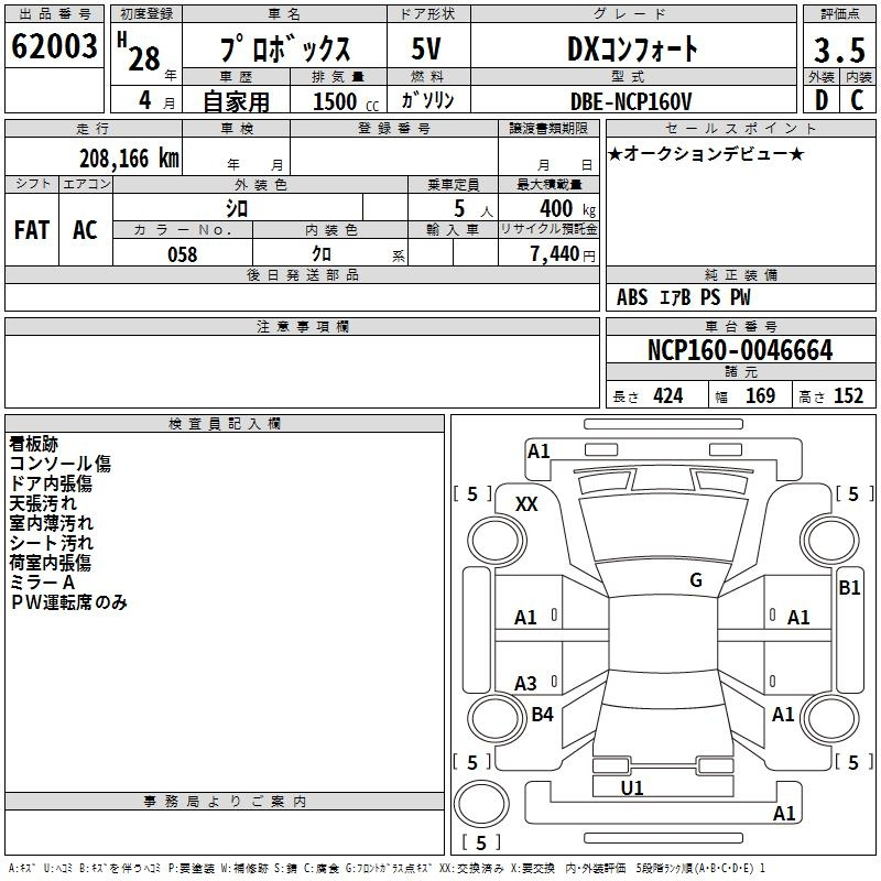 Toyota Probox, 2016 года - Лот№62003 ★3.5
