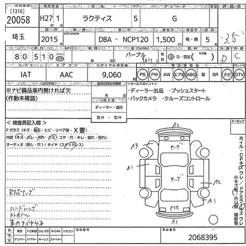 Toyota Ractis, 2015 года - Лот№20058 ★3.5