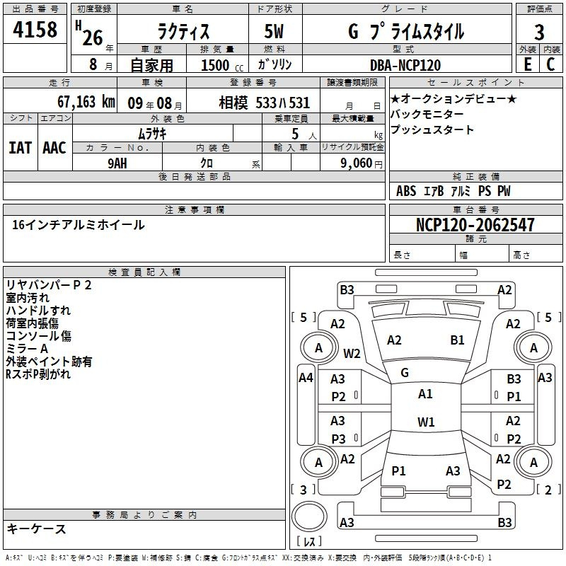 Toyota Ractis, 2014 года - Лот№4158 ★3