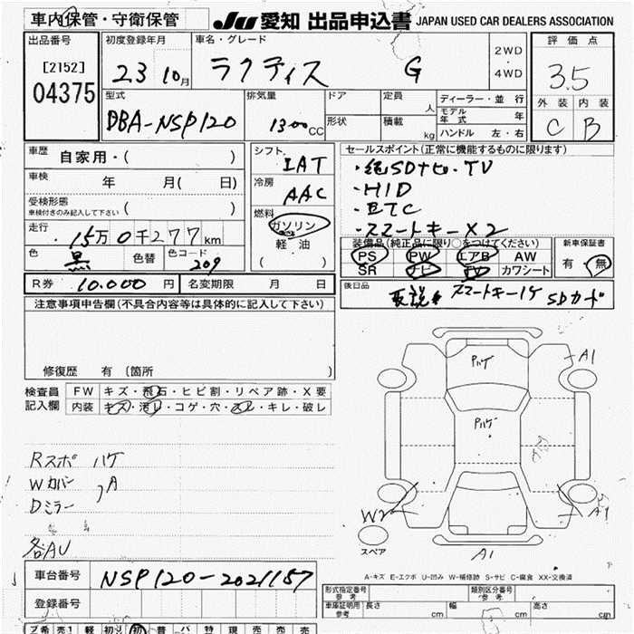 Toyota Ractis, 2011 года - Лот№4375 ★3.5