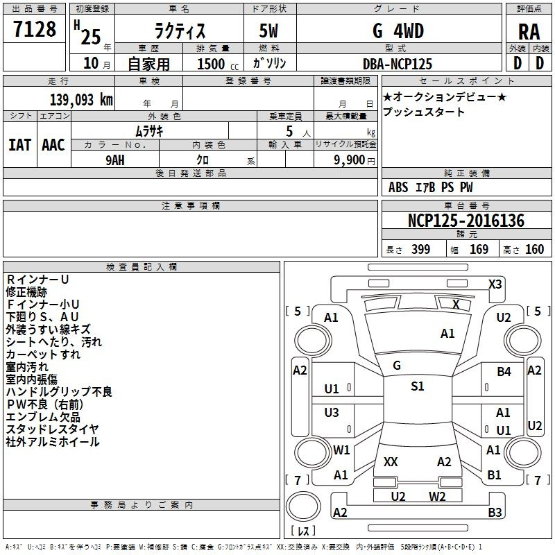 Toyota Ractis, 2013 года - Лот№7128 ★RA