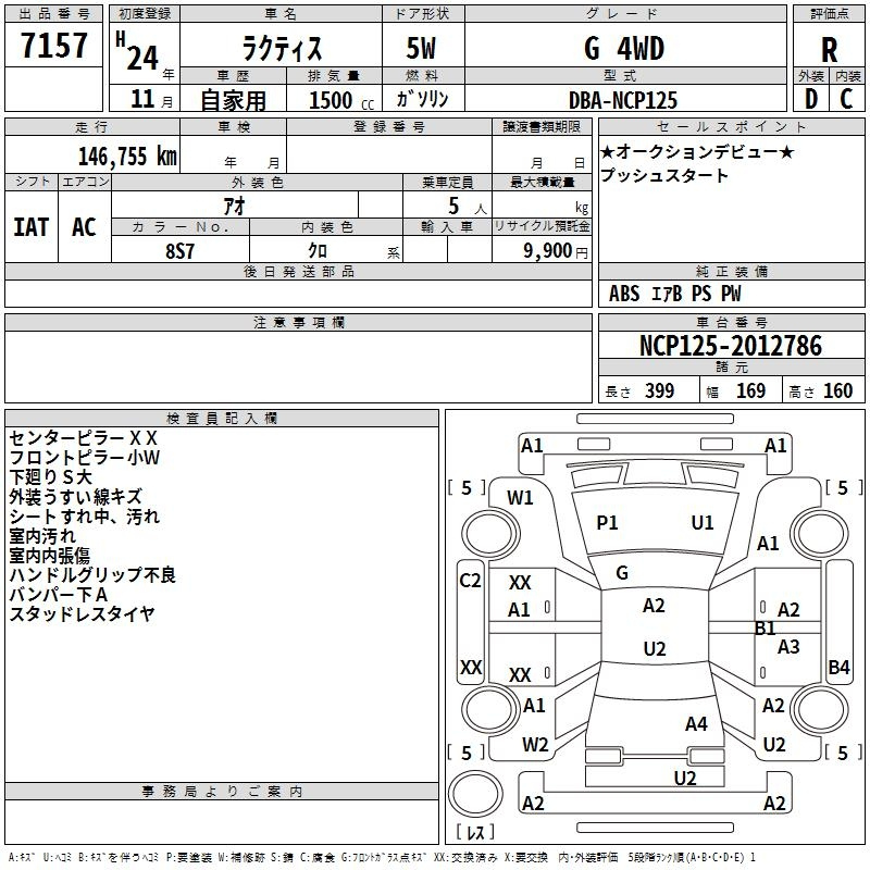 Toyota Ractis, 2012 года - Лот№7157 ★R