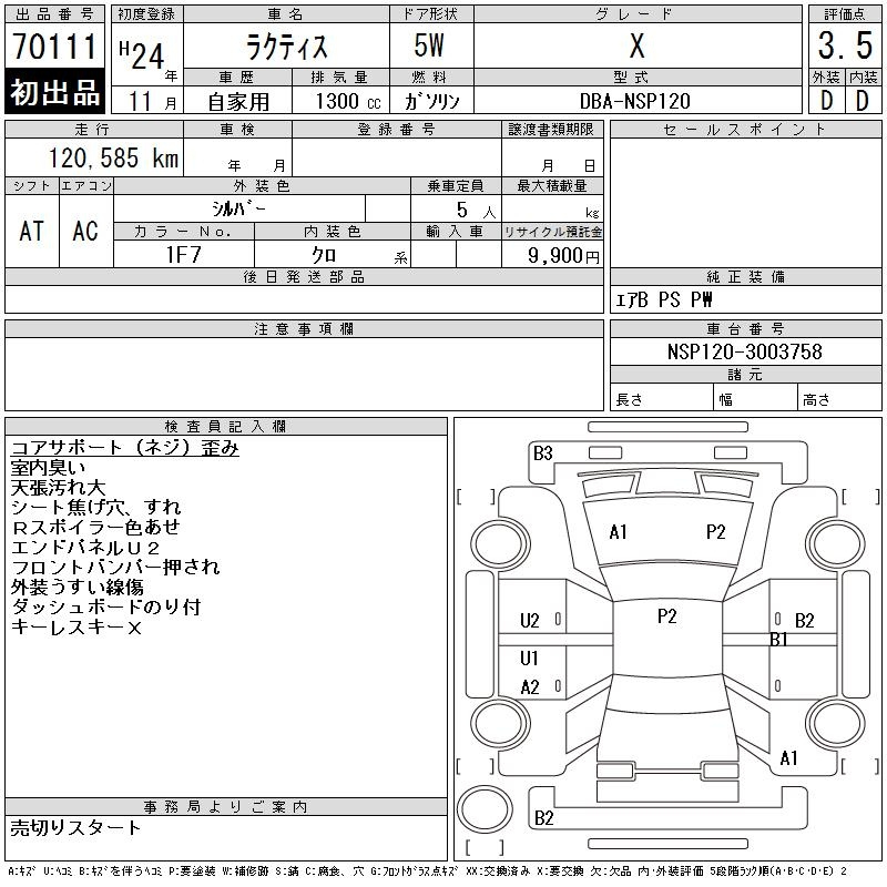 Toyota Ractis, 2012 года - Лот№70111 ★3.5