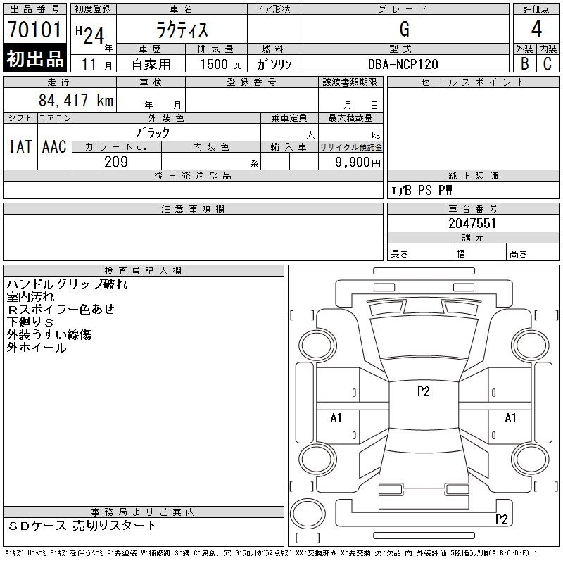 Toyota Ractis, 2012 года - Лот№70101 ★4