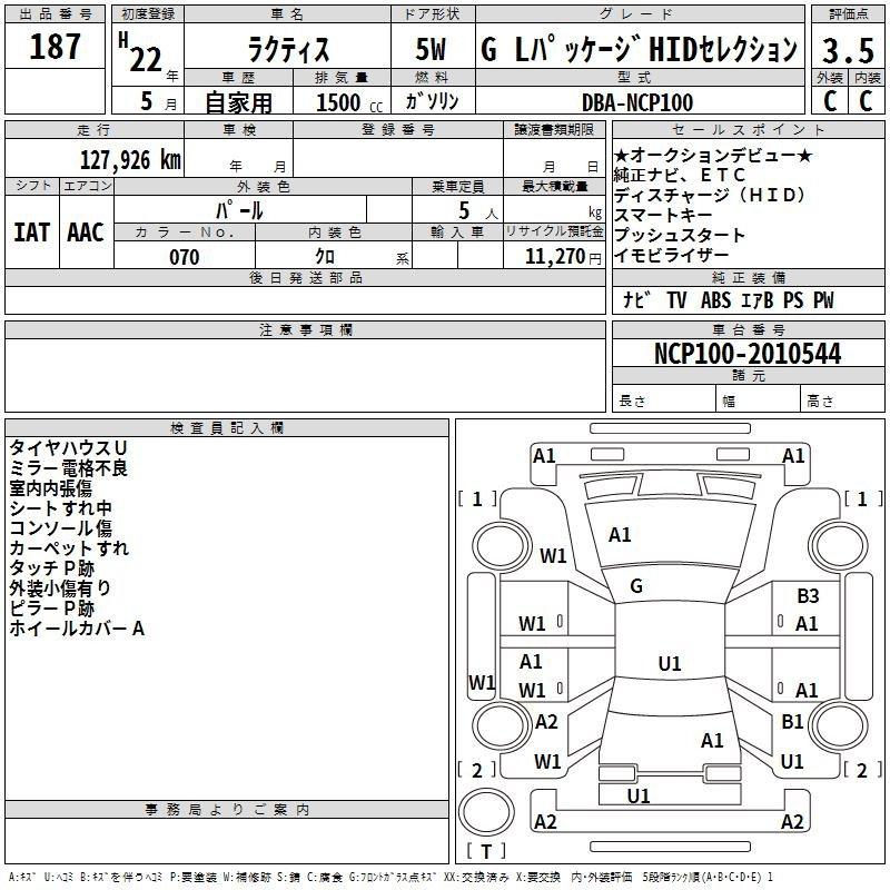 Toyota Ractis, 2010 года - Лот№187 ★3.5