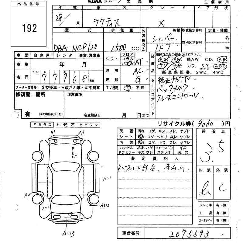 Toyota Ractis, 2016 года - Лот№192 ★3.5